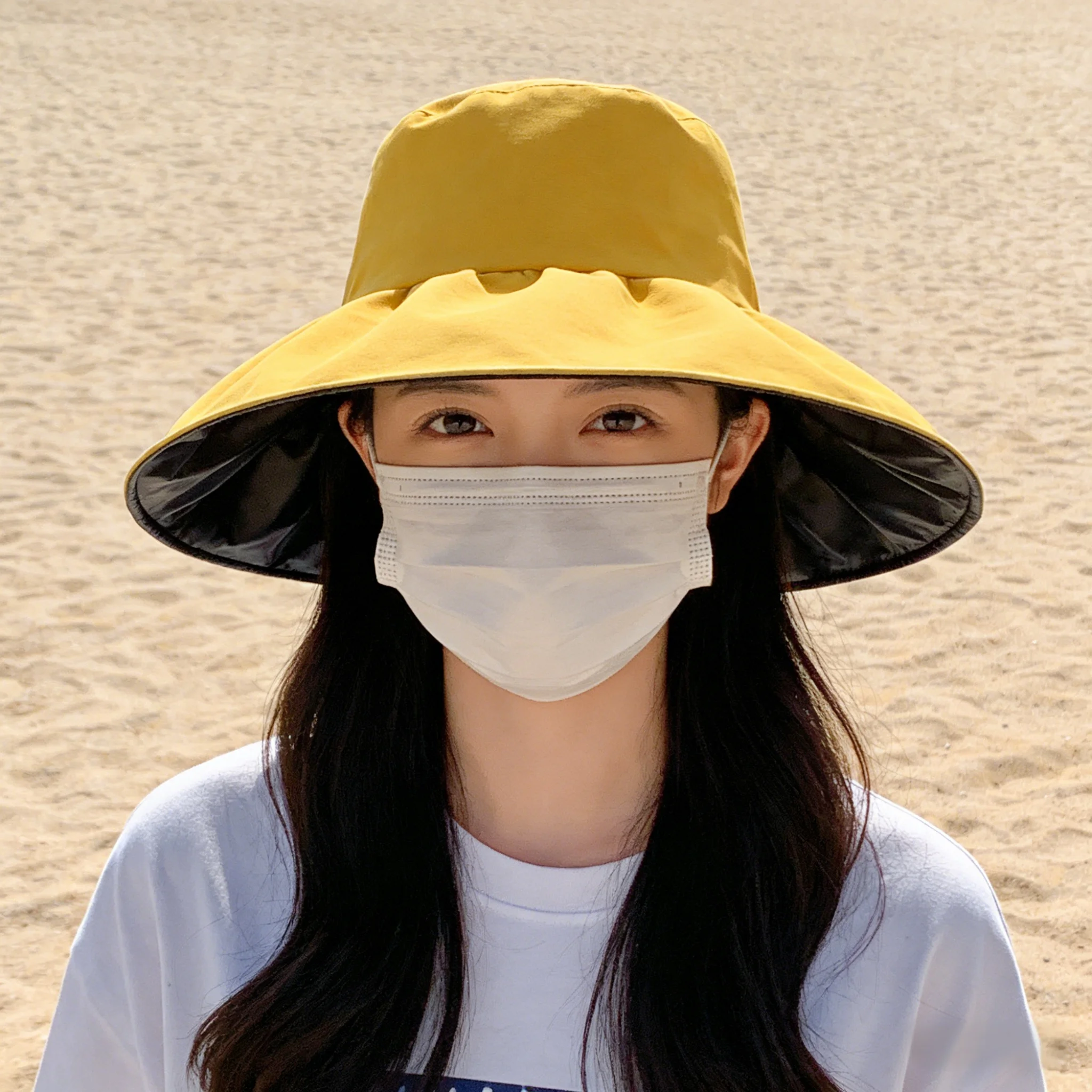 여성용 블랙 비닐 선크림 피셔맨 모자